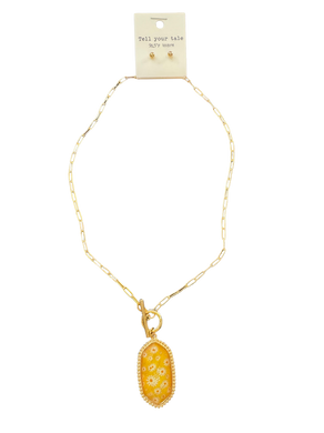 Light Blue Hexagon Daisy Necklace & Earring Set