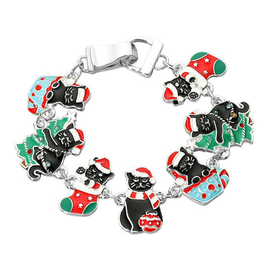 Christmas Black Cats Enamel Link Bracelet