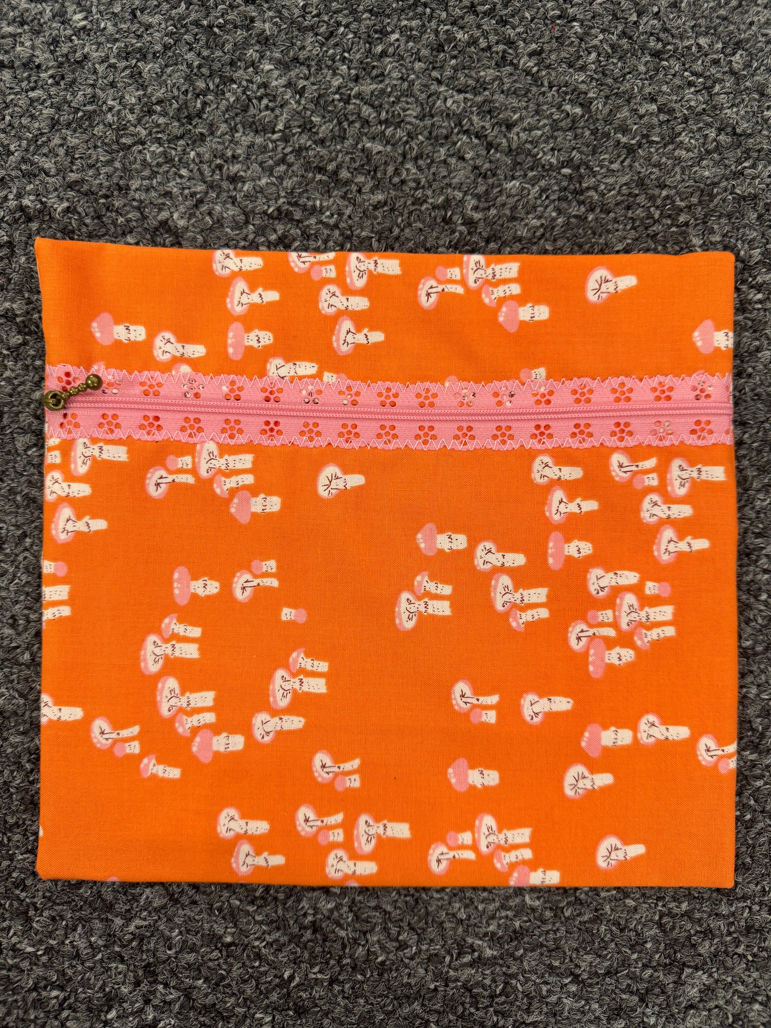 Orange Mushrooms  Handmade Zipper Bag - Cassy Raymond